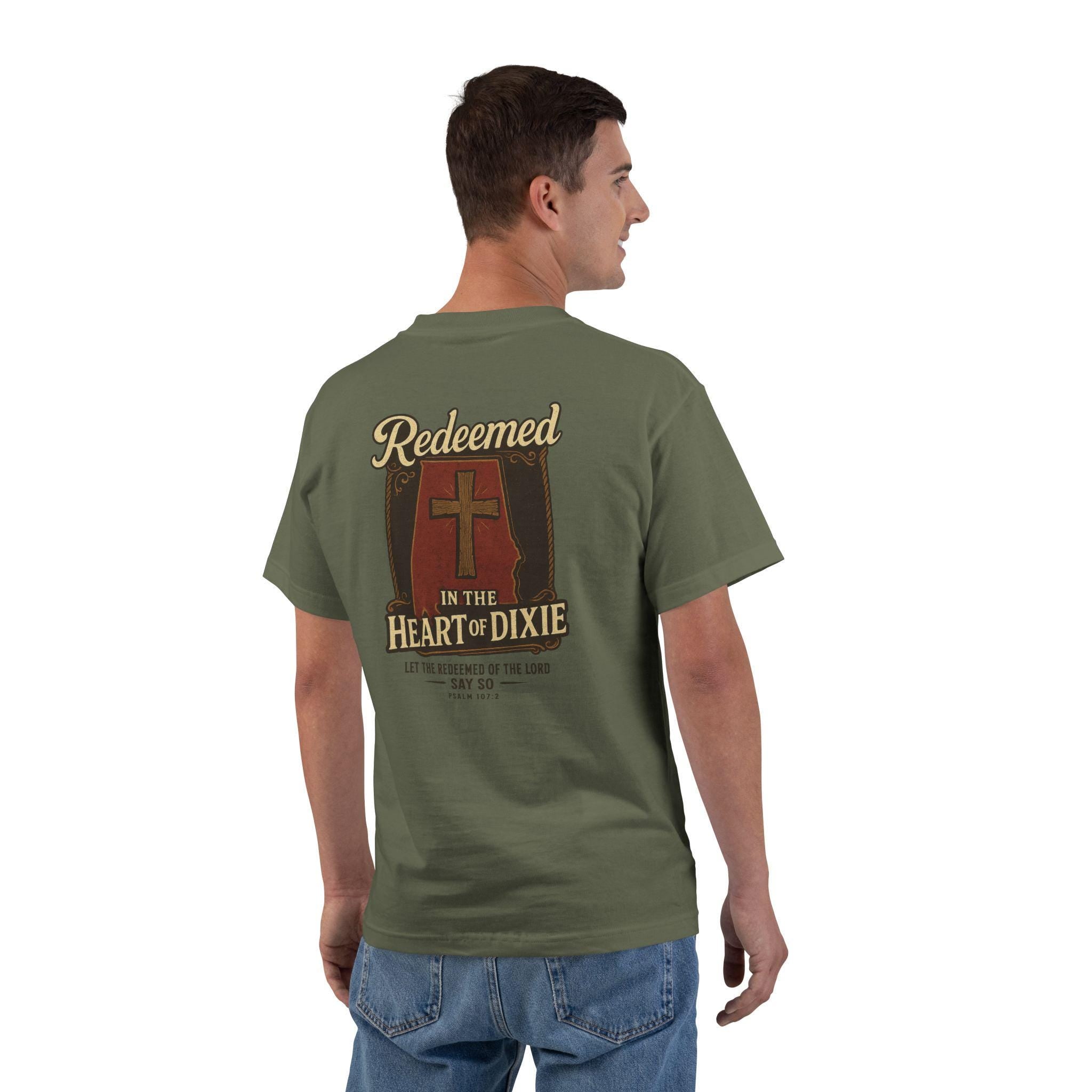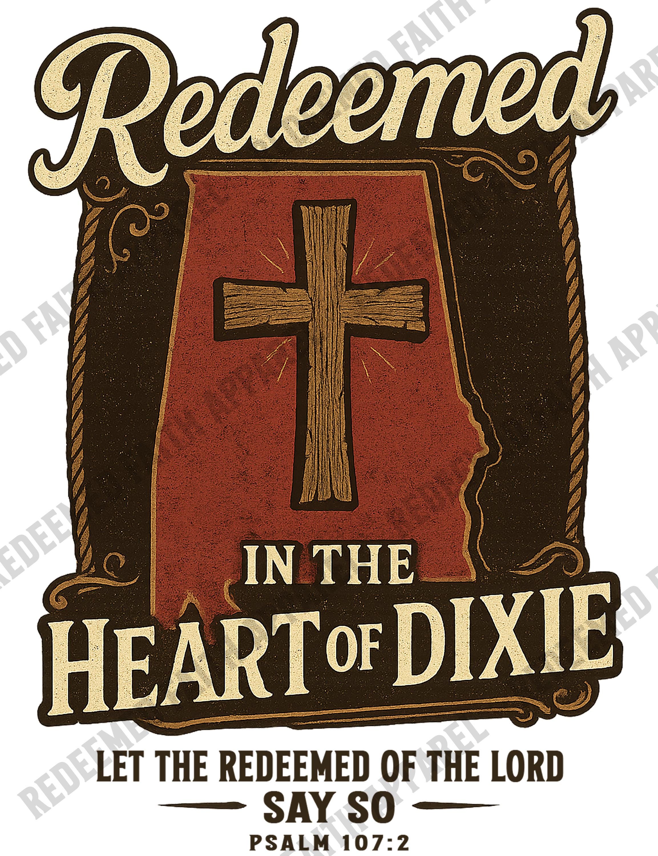 AL-Redeemed in the Heart of Dixie, Alabama Christian T-Shirt, Psalm 107 2, Christian Faith T-Shirt, Southern Style Apparel, Gift 4 Believers
