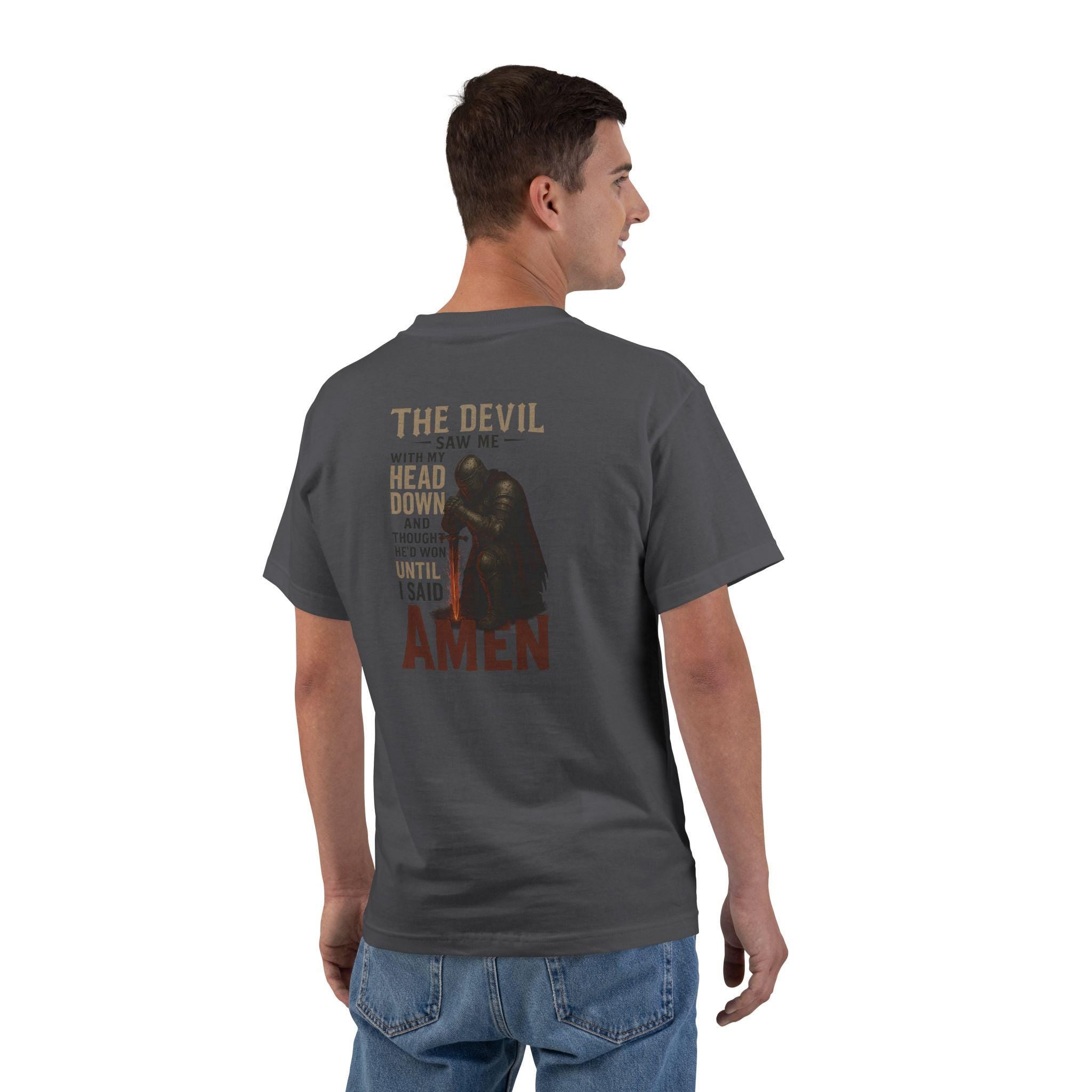⚔️ The Devil Saw Me with My Head Down Until I Said Amen - Christian Warrior T-Shirt
