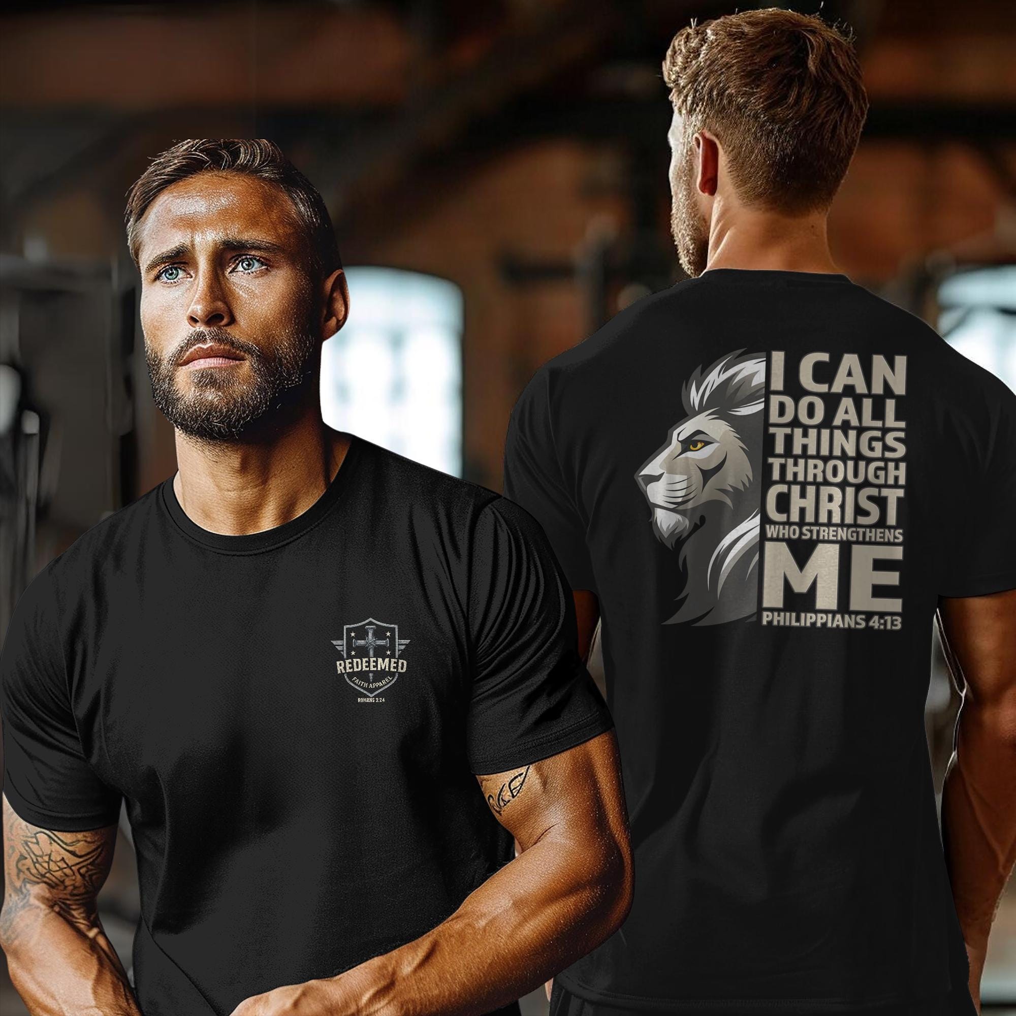 I Can Do All Things Through Christ Shirt - Philippians 4:13, Lion Christian Strength TShirt, Shirt with Inspirational Design, Christian Tee