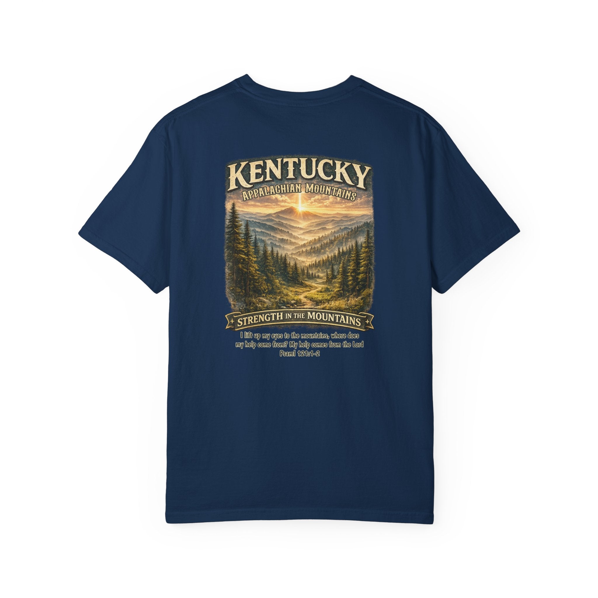 KY-Kentucky Appalachian Mountains Christian T Shirt, Strength in the Mountains, Psalm 121 Tee, Kentucky Gift, God Bless America Collection