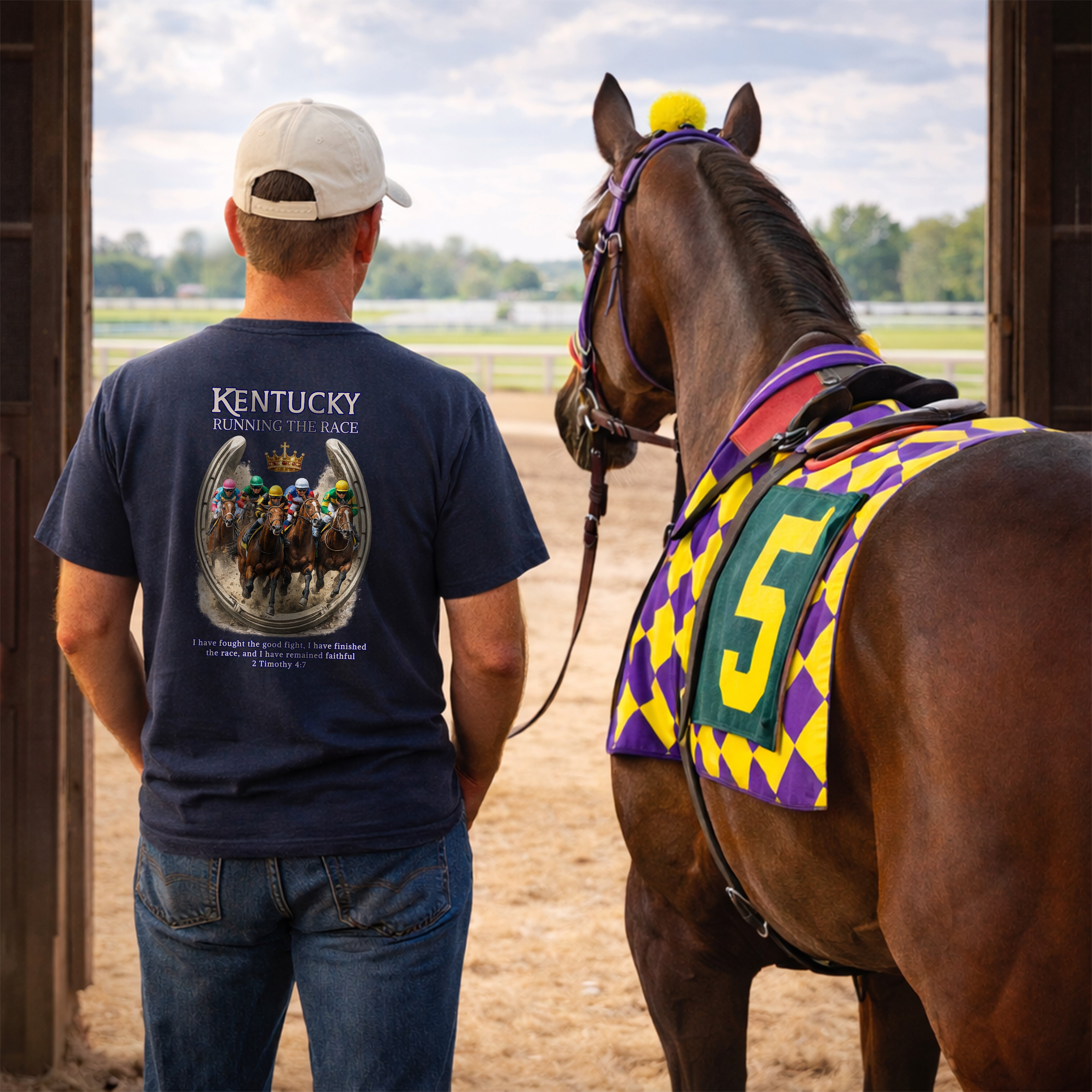 KY-Kentucky Running the Race Christian T Shirt, Horse Racing Shirt, 2 Timothy 4 Scripture Tee, Kentucky Derby, God Bless America Collection