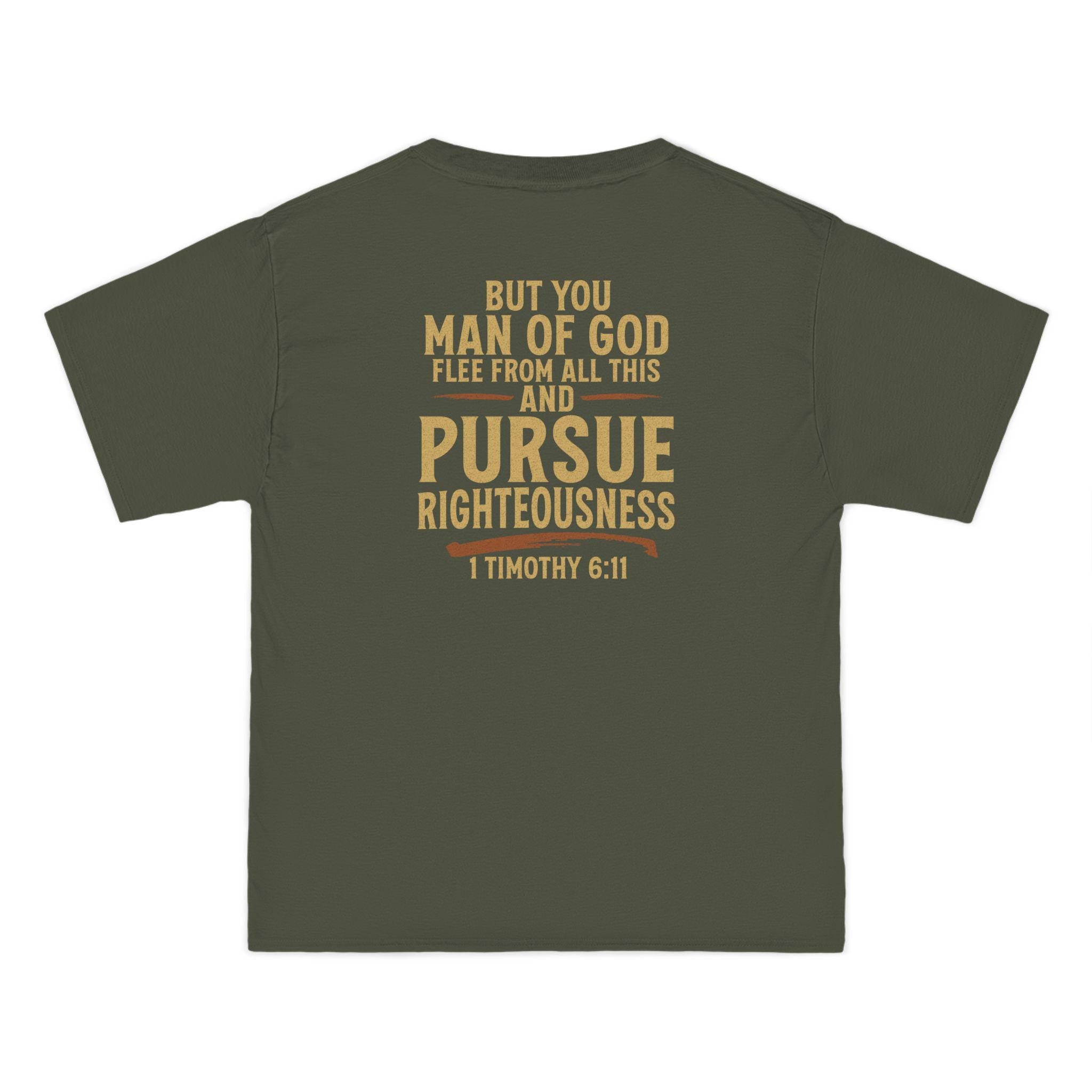 Pursue Righteousness Christian T-Shirt - 1 Timothy 6:11 Man of God Tee, Bold Mens Ministry Shirt, Scripture Faith Graphic for Men and Women